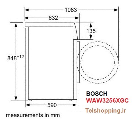 ویزگی ها و ابعاد (WxHxD) لباسشویی 9 کیلویی بوش سری 8 مدل WAW32560GC | |