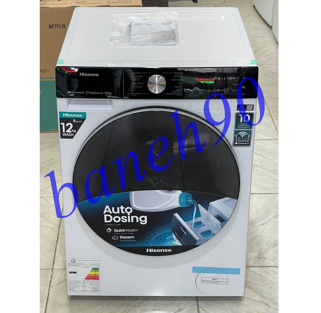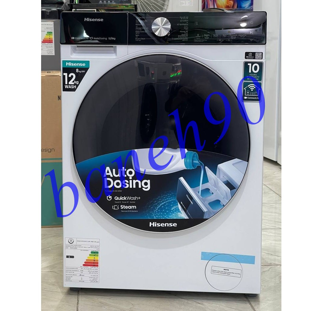 ماشین لباسشویی 12 کیلو و خشک کن 8 کیلو Hisense WD5S1245BW با 16 برنامه شامل فناوری بخار که 99.9 درصد باکتری ها و مخمرها را از بین می برد، برنامه ضدعفونی کننده ویژه و سرعت چرخش 1400 دور در دقیقه ارائه می شود.