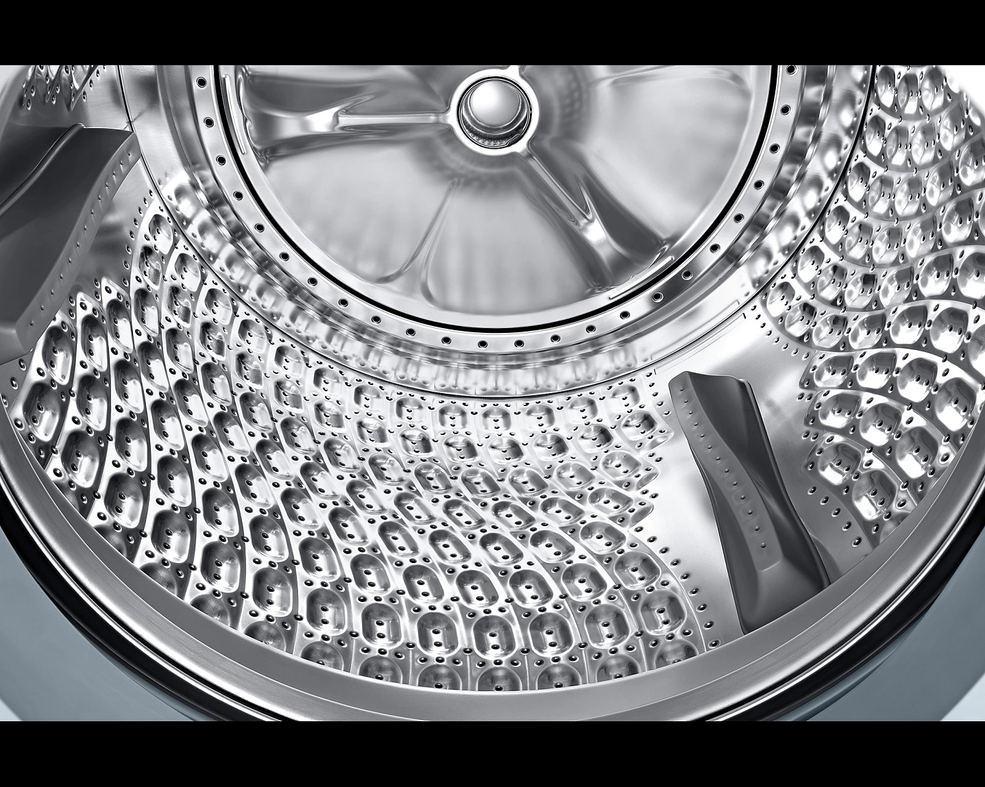QuickDrive™ زمان شستشو را تا 50 درصد و مصرف انرژی را تا 20 درصد کاهش می دهد، بدون اینکه به عملکرد تمیز کردن لطمه ای وارد کند. که لباسهای شما در یک حرکت پویا با نیروی دوگانه حرکت میکنند و در نتیجه شستشوی سریعتر و قویتر انجام میشود. به عبارتی دیگر دیگ این ماشین لباسشویی توسط دو نیروی (موتور) جداگانه به چرخش در می آید تا علاوه بر اینکه قدرت را دو برابر کند، بتواند کنترل و تسلط بیشتری بر دیگ لباسها، زمانی که لباسها خیس هستند و دیگ نیازمند قدرت بیشتری برای کنترل است، داشته باشد. به لطف موتور QuickDrive™ در این لباسشویی، مشکل لرزش دیگ از بین رفته و نیز تا 20 درصد در مصرف انرژی صرفه جویی می شود.