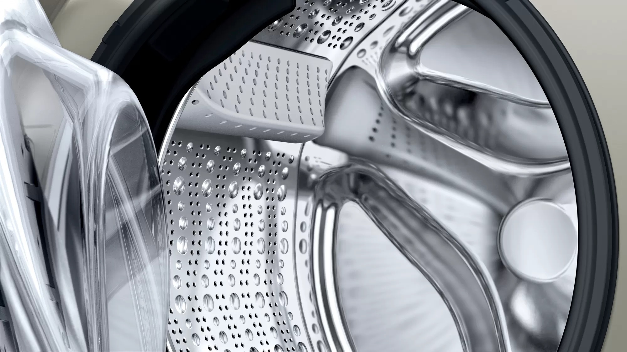 طراحی جدید دیوارهای جانبی این ماشین لباسشویی نه تنها چشم نواز است بلکه این ماشین همچنین ثبات بیشتری فراهم می کند و لرزش را کاهش می دهد. عایق های پیشرفته نیز سطح سر و صدا را کنترل می کند و باعث می شود که حتی در زمان چرخش با دور زیاد نیز بسیار آرام باشد. این ویژگی ناشی از نوع طراحی ماشین لباسشویی است که شرکت بوش با استفاده از آن توانسته ماشینهای لباسشویی خود را تا جایی که امکان دارد بدون لرزش طراحی کند و همین گزینه نیز در معروفیت ماشینهای لباسشویی بوش نقش به سزایی داشته است.