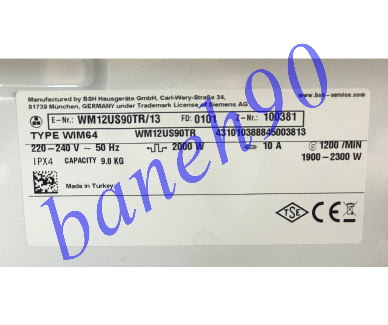 ماشین لباسشویی 9 کیلو زیمینس مدل WM12US90TR