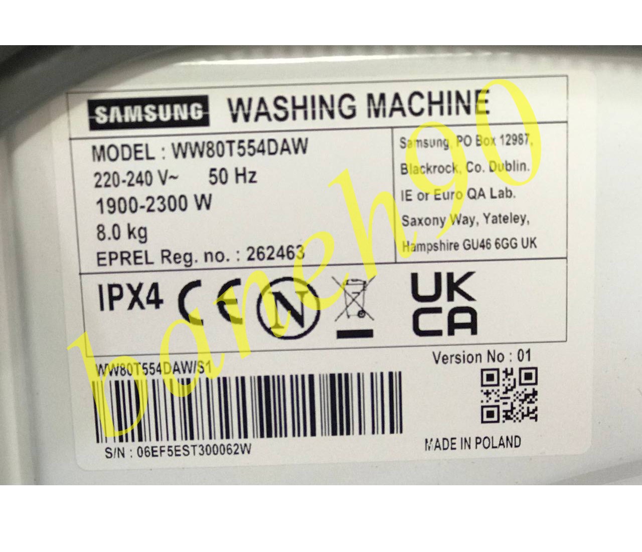 مشخصات ماشین لباسشویی سامسونگ WW80T554DAW