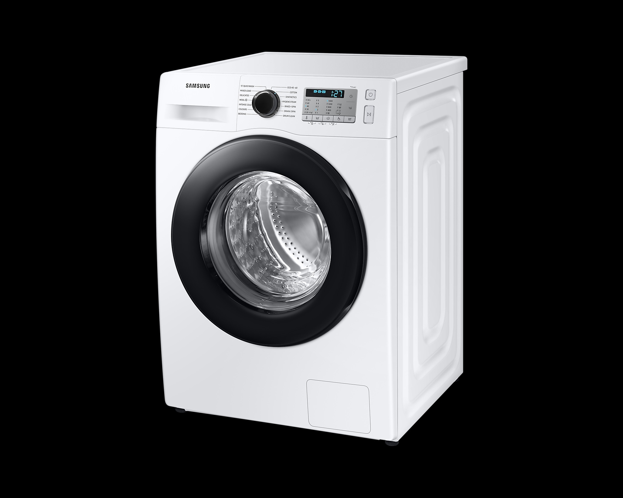 لباسشویی سامسونگ WW90 با ظرفیت 9 کیلوگرم تمام ویژگی های مورد نیاز امروزی و فناوری های به دست آمده در صنعت ماشین لباسشویی را داراست. موتور دیجیتال اینورتر آن با سرعت ۱۴۰۰ دور در دقیقه می چرخد و مصرف انرژی و لرزش و سروصدا به طور چشمگیری کاهش پیدا کرده است. طراحی این لباسشویی زیبا و سلیقه ای است. رنگ سفید در کنار ویژگی براق گونه ی آن جذابیت خاصی به فضای مورد استفاده می بخشد. این لباسشویی در ضمن کارایی زیاد و فناوری های جدید کاملا کم مصرف بوده و رده ی انرژی مصرفی آن ++A است. صفحه نمایش بزرگ برای آن اتخاذ شده که کنترل آن توسط این صفحه نمایش صورت می گیرد.