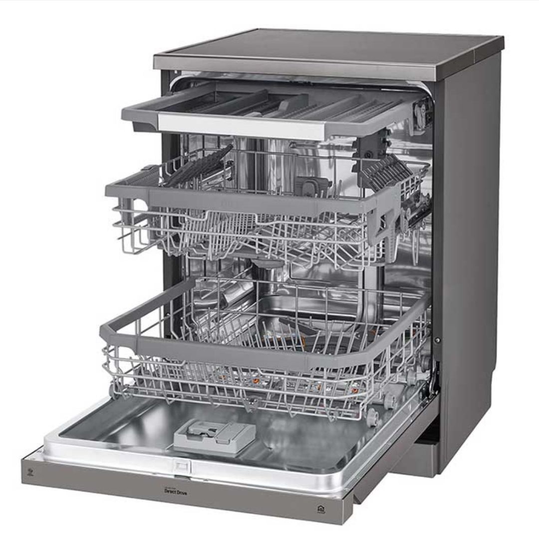 ماشین ظرفشویی ال جی یکی از کامل ترین ماشین ظرفشوییهای ساخته شده توسط کمپانی کرهای ال جی است که با قابلیتهای جدید و کارآمد تولید شده است. این محصول ظاهری زیبا و مقاوم دارد و مهم تر از این موارد با کمترین میزان مصرف آب میتواند شستشوی بهینه و اقتصادی به عمل آورد. ظرفیتی که ال جی برای این ظرفشویی مبله انتخاب کرده است، ۱۴ نفره بوده از این جهت از حیث گنجایش و ظرفیت برای استفاده در خانوادههای پرجمعیت و متوسط کاملا مناسب است. این ماشین ظرفشویی که از نظر رنگ در دسته بندی دستگاههای نقرهای قرار میگیرد، انتخاب مناسبی برای خانههایی با دکور مدرن است و مورد توجه سلیقهی اکثر کاربران قرار میگیرد. جدا از تمامی این موارد این دستگاه از مدلهایی است که به موتور با دوام ال جی یعنی اینورتر دایرکت درایو ( Inverter Direct Drive ) مجهز شده است.گفتنی است که طول عمر این موتور بسیار بالاست و ال جی برای آن هم ضمانت ده ساله ارائه داده است. موتور اینورتر بدون تسمه طراحی میشود از این جهت است که با کاهش دادن اصطکاک داخلی و جلوگیری از نوسانات برق میتواند به میزان قابل توجهی در مصرف برق صرفه جویی به عمل آورد. علی رغم مصرف آب و برق، این موتور همچنین باعث شده که صدای دستگاه بسیار کمتر از مدلهای معمولی باشد به همین خاطر است که ظرفشویی ال جی سطح صدایش تنها به ۴۱ دسی بل میرسد از این رو روشن نمودن آن در هر ساعت از شبانه روز مزاحمتی ایجاد نمیکند. موتور Direct Drive چند سالی است که در محصولات این شرکت مورد استفاده قرار میگیرد که هر ساله به قابلیتها و تواناییهای آن اضافه میشود.