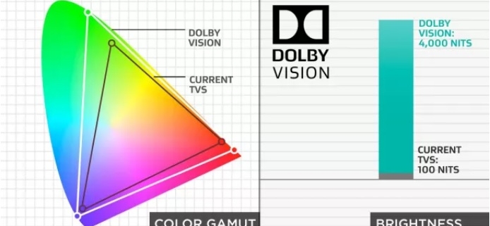 فرمت دالبی ویژن دارای داده و جزئیات بیشتری نسبت به Ultra HD Premium است. Dolby Vision  تفاوت بین میزان دامنه رنگی را برای هر رنگ افزایش می دهد که به موجب آن کنتراست تصویر افزایش می یابد. برای نمایش محتوای Dolby Vision پنل با عمق نمایش رنگ یا داده 12 بیت لازم است که این میزان تا 68 بیلیون رنگ را تولید و بازسازی می کند. در تصویر زیر اهمیت و کیفیت و سطح دالبی ویژن مشخص شده است:
