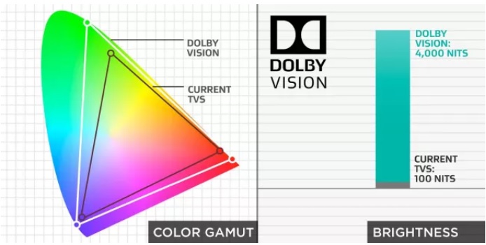 فرمت دالبی ویژن دارای داده و جزئیات بیشتری نسبت به Ultra HD Premium است. Dolby Vision تفاوت بین میزان دامنه رنگی را برای هر رنگ افزایش می دهد که به موجب آن کنتراست تصویر افزایش می یابد. برای نمایش محتوای Dolby Vision پنل با عمق نمایش رنگ یا داده 12 بیت لازم است که این میزان تا 68 بیلیون رنگ را تولید و بازسازی می کند. در تصویر زیر اهمیت و کیفیت و سطح دالبی ویژن مشخص شده است: